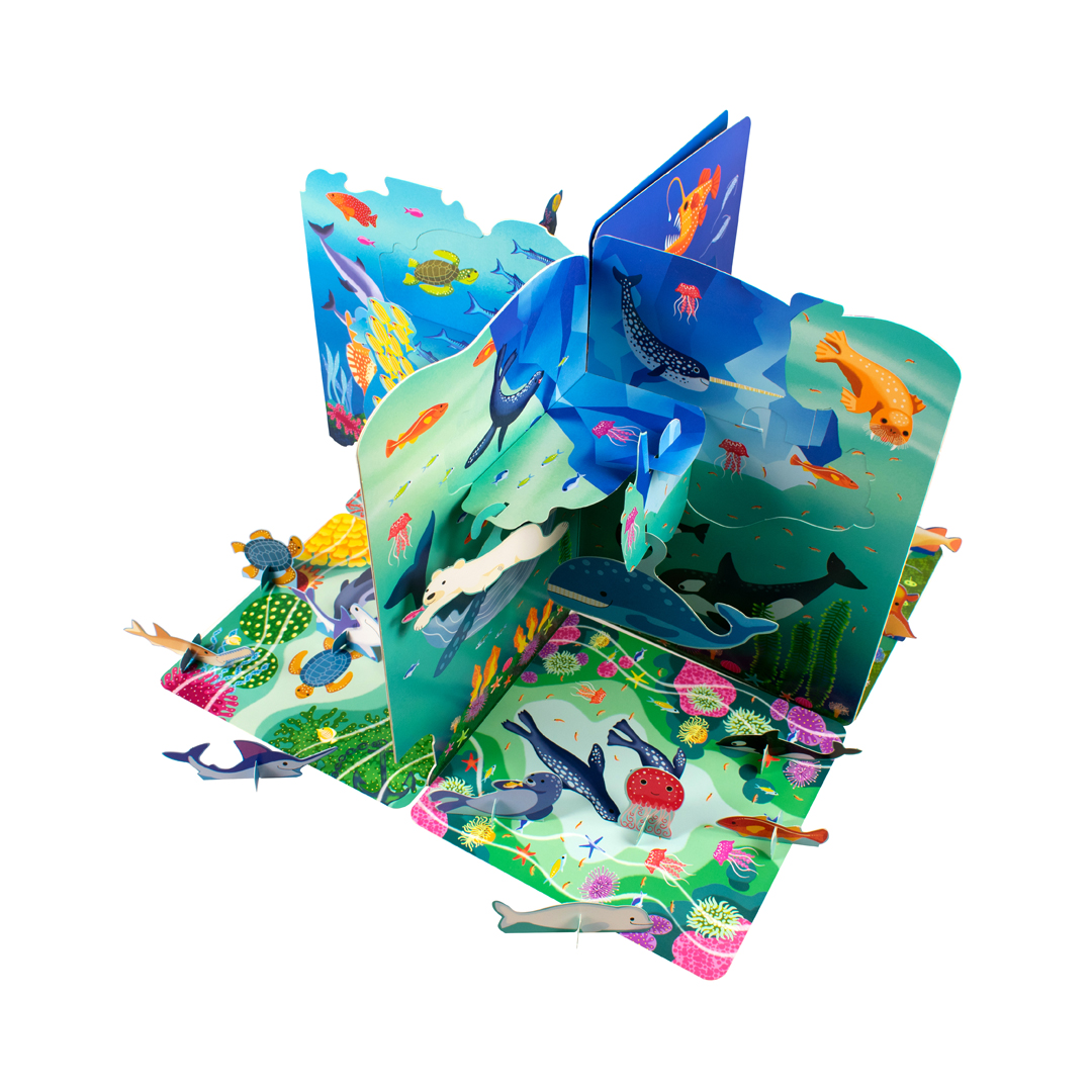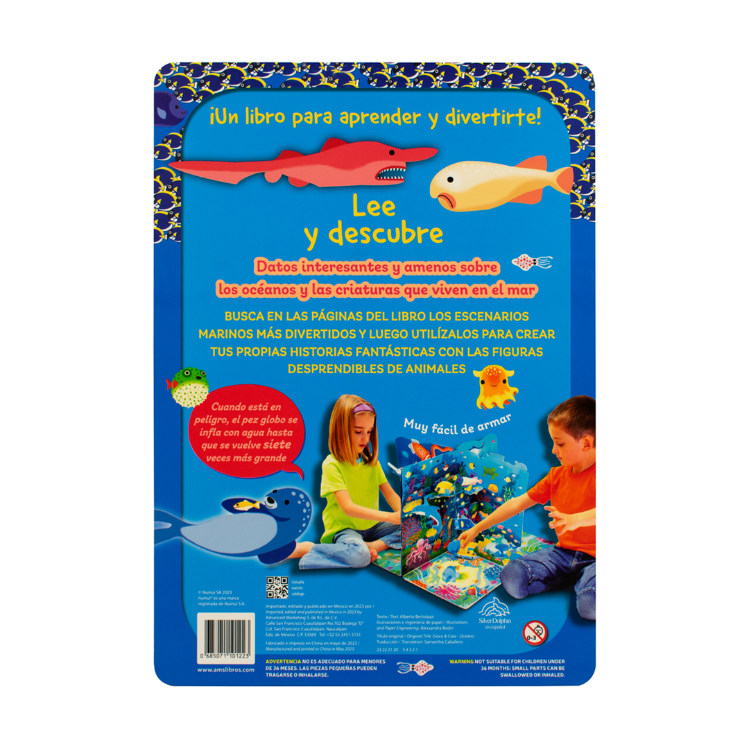 Pero eso no es todo. “libro con escenarios: el oceano” va más allá de la lectura, ya que invita a los niños a participar activamente en la diversión. Encontrarán escenarios marinos desplegables llenos de vida y color, poblados por una variedad de criaturas marinas desprendibles. Estas figuras pueden ser utilizadas para crear sus propias historias fantásticas y emocionantes.