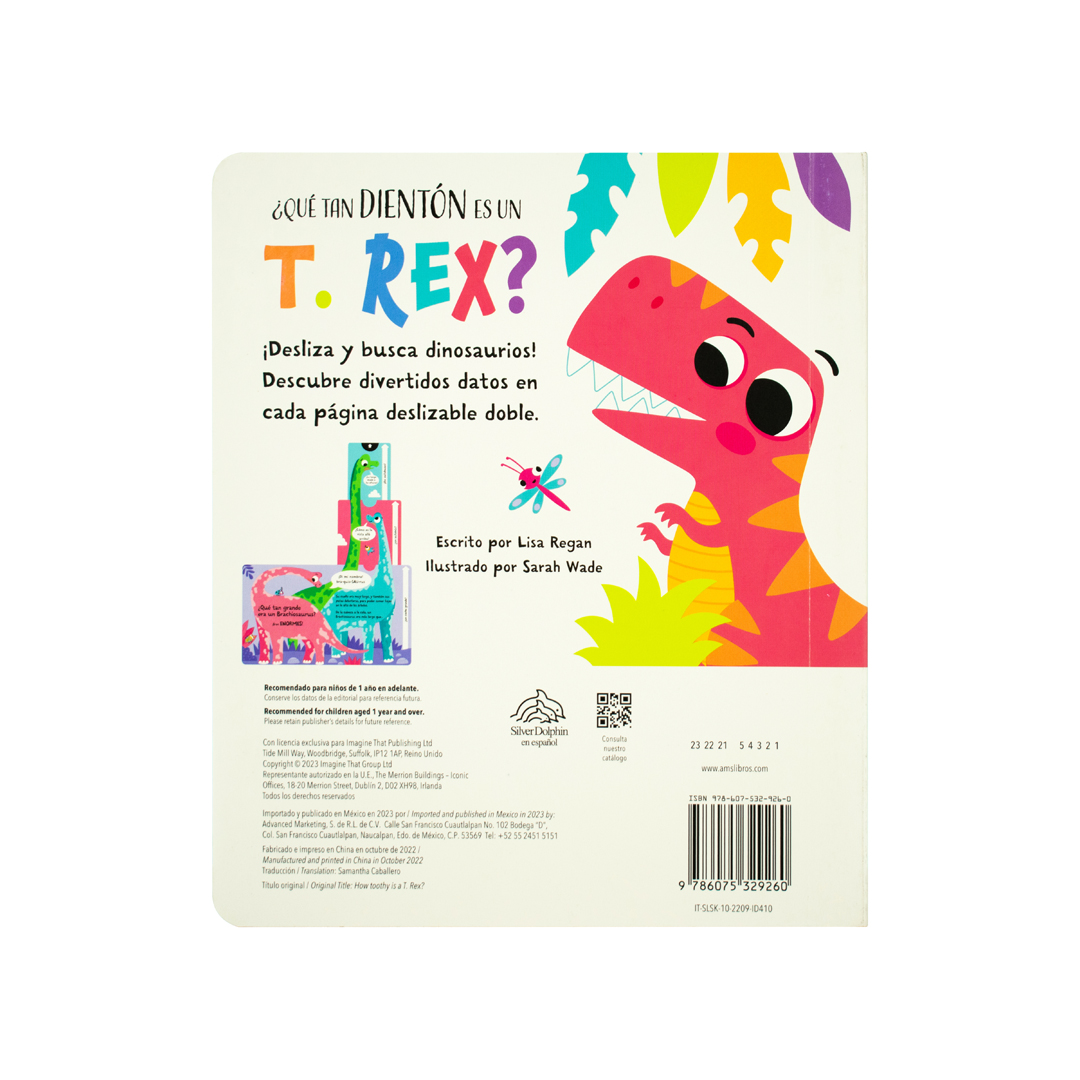 Diviértete con este increíble libro con el cuál podrás deslizar y buscar ¿Qué tan dientón es un T- Rex?.