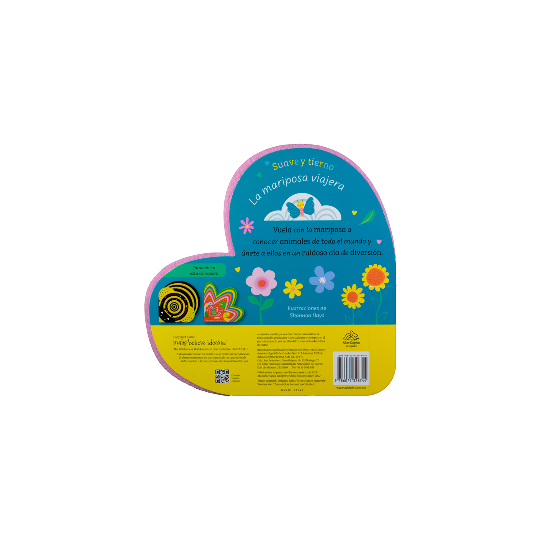 Acompaña a nuestra mariposa viajera en un fascinante recorrido por todo el mundo, donde descubrirá animales exóticos y participará en un día bullicioso lleno de diversión. Las páginas suaves y tiernas no solo son un deleite para las manos curiosas de los pequeños, sino que también ofrecen una oportunidad para aprender sobre numeración, colores y texturas de una manera lúdica y envolvente.