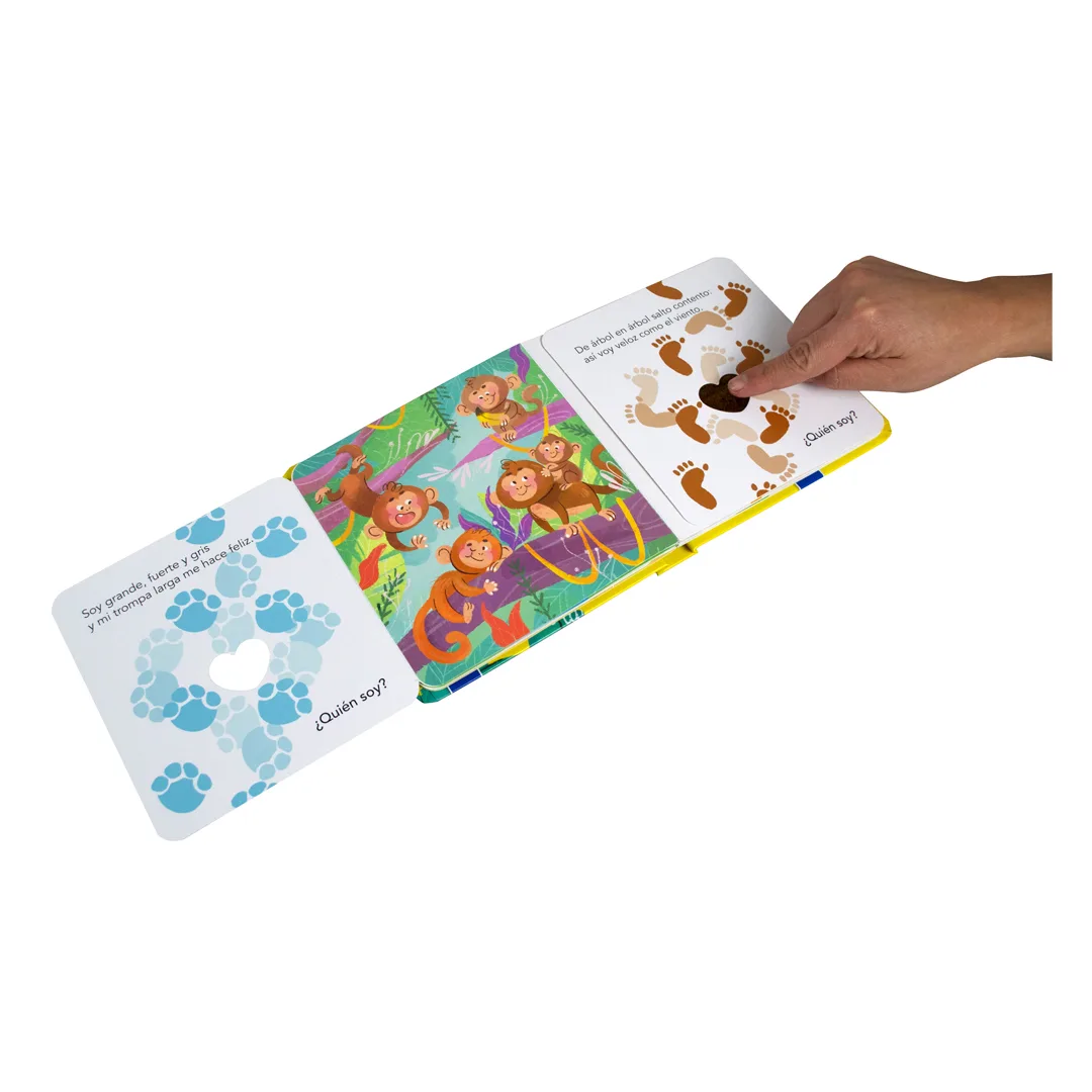 En cada página, los niños encontrarán pistas visuales y texturas que podrán tocar y sentir: un pelaje suave, una superficie rugosa o una huella misteriosa que anticipa qué animal está por revelarse. Acompañando cada pista, una adivinanza rimada sencilla y divertida estimula el lenguaje, la memoria y la atención. ¿Será un león con gran melena? ¿Un elefante con trompa larga? ¿Tal vez una jirafa con manchas doradas?