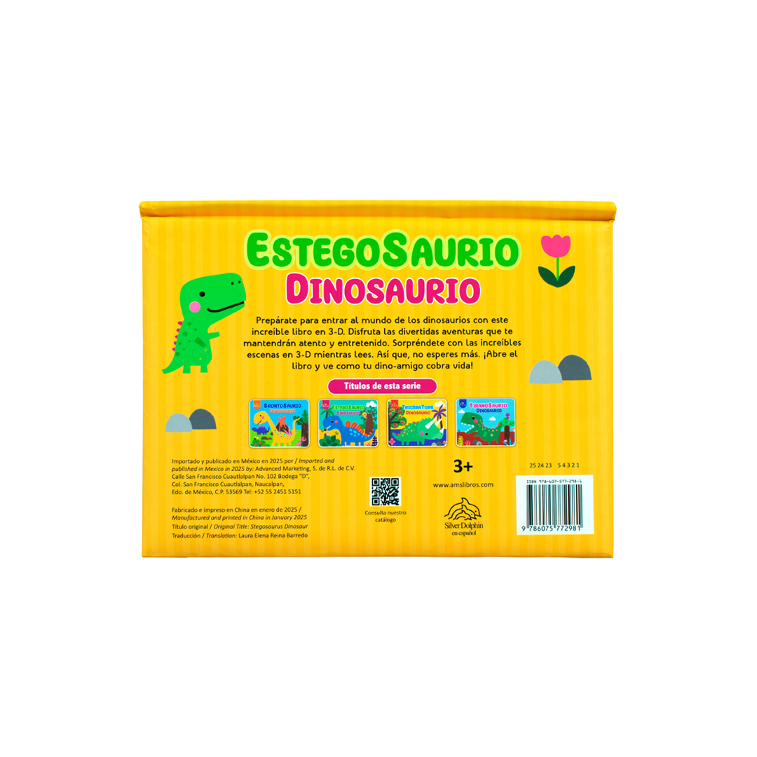 Es un libro interactivo lleno de sorpresas, diseñado para niños a partir de 3 años. Prepárate para adentrarte en un fascinante viaje al mundo de los dinosaurios con este libro en 3-D, donde el Estegosaurio, un dinosaurio único y lleno de carácter, se convierte en el compañero perfecto para explorar este emocionante y prehistórico paisaje.