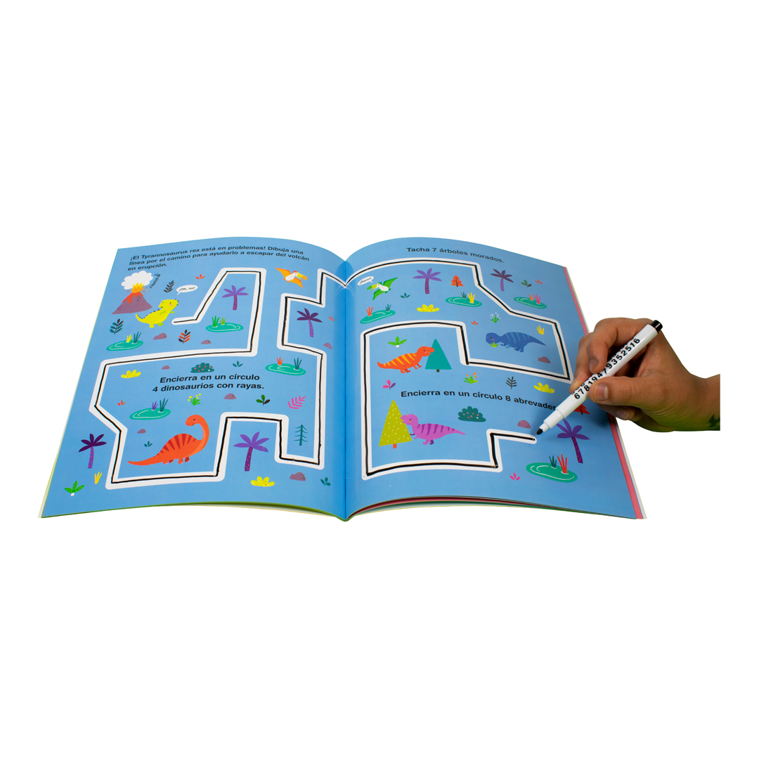Con dinosaurios como tema principal, los niños podrán utilizar el plumón que se borra para trazar caminos en fabulosas escenas prehistóricas. Este libro está diseñado para ayudar a los niños a desarrollar sus habilidades numéricas mientras se divierten y aprenden sobre estos magníficos animales.